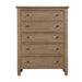 The Riverdale Chest may appear rustic but this case has all the amenities you will love in a bedroom storage piece. This Chest is solidly constructed with English dovetail drawers and metal side drawer glides and finished with a hearty distressed Driftwood finish that brings casual style to any room. Felt-lined drawers ensure safe keeping of delicate clothing. Modern Ranch styling at its finest, the Riverdale Drawer Chest adds vertical storage in a beautiful way.