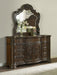 Elegant, traditional styling in a grandly scaled bedroom collection, Royale offers all the essentials of modern life in a package that honors designs from antiques past. Olive ash burl accents combine with a deep, brown cherry finish in a truly opulent presentation.Storage items include a Lift-Top Chest with valuable hidden storage, Dresser & Mirror and Nightstand with USB charging ports.