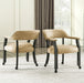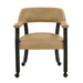 The Rylie Captain’s Chair effortlessly combines practicality and elegance. Outfitted with four independent casters, it offers unparalleled mobility, ideal for dining rooms, offices, or as a sophisticated addition to living spaces. Its solid wood legs guarantee both durability and stability. Wrapped in fade-resistant sand vegan leather and adorned with copper nailhead trim, this chair radiates lasting beauty. The smoky, black finish offers a beautiful contrast to the sand colored vegan leather in a sultry and sophisticated game or dining chair.