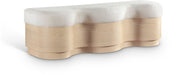 The bold and artistic Savoy velour fur fabric upholstered bench brings a unique wave-like design to your space. Plush velour fur fabric atop creates a soft, luxurious seating experience, while the sculptural wooden base in a natural finish adds a playful yet sophisticated touch. Perfect for those seeking to make a statement, it blends form and function, offering comfort and style in one eye-catching piece.
