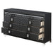 - Drawer: Sparkling Trim, Embossed Fronts, GLIDE Side Metal (Ball Bearing, 2/3 Ext.), DOVETAIL English Front & Back, Felt Lined Top Drawer Only, Safety Stop Included, Manual Close, Dust-Prof Bottom Case Only, Hardware: Single Pull Handle, Metal (Zinc Allow w/Faux Crystals)