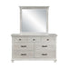 The Silver Sands Dresser combines durability and quality construction, crafted from solid pine, manufactured woods, and oak wood veneers for a strong and stable piece. Its transitional style merges clean, simple lines with a rustic wood finish, creating a calm and inviting atmosphere. The misty finish, achieved through a meticulous multi-step, hand-applied process, offers a light, weathered look that highlights the natural grain and mineral patterns of the wood. Elegant design features, including a raised base, full return and dentil moldings, and contrasting hardware, add a sophisticated touch. Heirloom-quality drawers with dovetail joinery and three-stage steel ball glides ensure smooth, full-extension operation and can support heavy loads. With seven spacious drawers, including velvet-lined top drawers to protect delicates, this dresser provides ample storage for clothing essentials. Combining style, durability, and functionality, this dresser is a practical and elegant addition to any bedroom.