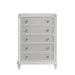 Introducing the Stardust Chest, a captivating piece designed to bring a touch of modern luxury to your bedroom. Crafted with meticulous attention to detail, this chest is constructed from durable manufactured wood, featuring an eco-friendly decorative laminate and UV coating for enduring quality. The sleek white finish is elegantly complemented by glamorous silver accents, adding a dose of sophistication to your space. Adorned with sparkling Poly/Cotton fabric and shimmering crystal hardware, this chest exudes opulence and charm. Illuminate your room with the integrated LED lighting, accentuating the captivating style of this exquisite piece. Inside, the drawers are thoughtfully designed with English dovetail joinery, full extension glides, finished interiors, and felt-lined top drawers, ensuring both beauty and functionality. With diamond-style accents, silver mylar trims, and accent lighting, the Stardust Chest is the perfect choice for those seeking unparalleled sophistication and style in their bedroom decor.