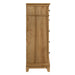 The Sunstone Chest combines durable, quality construction with solid rubberwood, manufactured woods, and hickory wood veneers, creating a strong and stable five-drawer chest. This collection features a classic, rustic style with natural wood finishes and clean, simple lines, complemented by neutral tones and a minimalistic design that fosters a serene and inviting atmosphere. The clear, natural finish, achieved through a hand-applied stain, enhances the wood's grain patterns and characteristics. The chest's elegant design includes a raised base, full return moldings, and contrasting hardware, adding a sophisticated touch to any bedroom. Heirloom drawer quality is ensured with durable dovetail joinery, providing longevity and strength, while three-stage steel ball glides allow for smooth, full-extension operation and support for heavy loads. Functional extras include five spacious drawers for ample clothing storage and a velvet-lined top drawer to protect delicate items. The Sunstone Chest is a practical and stylish addition, offering both timeless design and optimal functionality for your bedroom.