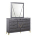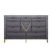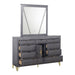 The Symmetry 10-Drawer Dresser blends luxury and function, elevating any bedroom with its glamorous appeal. Crafted from premium woods with an eco-friendly gray marble laminate, it’s a true statement piece. Ultra-soft fabric drawers, adorned with gold metal and mylar accents, add sophistication. Spacious English dovetail drawers glide smoothly on Kenlin ball-bearing tracks for durability. Offering ample storage and timeless elegance, this dresser is the perfect touch of glamour.