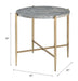 Sleek finish, sharp angles, and stylish designs were incorporated in this stunning modern piece. Shown in a champagne gold finish, the metal open base with X-shape support boasts a simple silhouette that exudes modern elegance. Round faux marble table top complements gold metal frame perfectly, creating a bold visual effect. Make your seating area more comfortable and complete with this voguish end table.