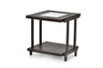 The sophisticated Terrell End Table makes a unique and stylish accent piece in your home. Features rustic industrial design with a rich wood tabletop and a roomy bottom shelf, supported by a highly stylized iron frame.