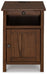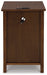 Add big character to a small space with this chairside end table. With its compact size and strong silhouette, it can go anywhere and blend easily into the decor. Less is so much more with the Shaker-inspired design and warm brown wood tone finish. Loaded with form and function, this end table displays accent pieces and stores essentials securely while keeping devices powered up.