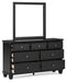 | Details | B687B2: Includes twin panel headboard, footboard and rails, Made with hardwood solids, birch veneer and MDF substrate, Black painted finish, Thick profiled tops, Tapered feet, Foundation/box spring required, sold separately, Mattress available, sold separately, Assembly required, Bed is compatible with an adjustable base, B687B1: Includes dresser and mirror, Made with hardwood solids, birch veneer and MDF substrate, Black painted finish, 7 smooth-gliding drawers with dovetail construction and ball-bearing side glides, Round metal drawer knobs with satin nickel-tone finish, Framed drawer fronts, Tapered feet, Mirror attaches to back of dresser, Assembly required, | |