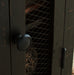 | Details | Made with pine veneers, pine wood and engineered wood, Two-tone distressed finish (light brown top and rustic vintage black base), Single door cabinet with metal grill and hardware, Center shelf | |
