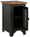 To those with an eye for the best in rustic farmhouse living, this two-tone chairside end table doubles up on charm. Designer touches include plank-effect styling, distress marks and a wire mesh door front for added character.