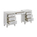 Introducing the Valentino 7 Drawer Vanity Dressing Table—a masterpiece of enduring craftsmanship crafted from a blend of manufactured and solid woods, adorned with exquisite embossed inlays. Revel in its glitz and glam, featuring a gleaming finish, mirrored trims, crystal-studded drawer pulls, and alligator-embossed accents that exude Hollywood allure. Delight in its thoughtful details, from heirloom-crafted English dovetailed drawers with snag-free interiors to smooth full-extension ball-bearing glides. With an abundance of storage, this vanity table offers ample space to organize cosmetics and accessories, including a luxurious velvet-lined drawer for jewelry. Transform your beauty routine into a glamorous experience with this exquisite piece—a true reflection of style and functionality.