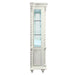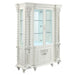 Sophisticated luxury radiates beautifully in the Vanaheim Dining Room Collection. Fabulous floral design with gorgeous details in each piece makes the collection classical and timeless. Antique white finish gives the surface an alluring feel and elegant touch. A clear glass dining table top allows light to filter into and through the whole table, enhancing the collection's overall design. Upholstery side chairs feature elaborate button-tufted design for adding extra style and comfort to the collection. This extremely extravagant style will make any ordinary dining room appear much more unique.