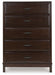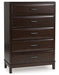 A rich, metropolitan finish. Unbeatable function. With this chest of drawers, it’s a breeze to create a casual contemporary hideaway full of style and convenience. It combines thoughtful craftsmanship and handy storage, with smooth-gliding drawers to help keep clothes and linens organized. Metal bar pulls complete the look with added flair.