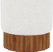 Indulge in the luxurious texture of the Veranda Boucle Fabric Ottoman/Stool. It boasts a rich boucle fabric that is paired with an elegant and sturdy solid wood base, featuring a walnut finish that highlights the beautiful wood grain patterns. This unique combination of materials creates a perfect blend of style and durability, making it an ideal addition to any modern or traditional interior design.