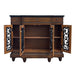 The Vidi console table boasts of the traditional wooden design with four doors and three drawers. Decorative metal grills at the front add a special charm to this console table.