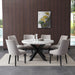 A stunningly beautiful marble table top is the centerpiece of this gorgeous round dining set. With a nod to Mid-Century Modern styling, a splash of rustic accent and a healthy dose of elegance, Xena blends design elements to create a unique dining set that functions well for special occasions or everyday dining. Great by itself or add a couple extra chairs to maximize seating for six.