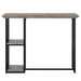 Introducing the captivating Zudora counter height table that seamlessly blends antique and industrial styles, resulting in a stunning centerpiece for your dining area. The antique oak tabletop exudes warmth and timeless beauty, its rich and inviting tones create a charming and rustic atmosphere, making it a perfect choice for those seeking a vintage-inspired aesthetic. Contrasting against the antique oak tabletop is a sleek black finish slatted metal base. This industrial-style base adds a contemporary touch to the table's overall design, creating an eye-catching contrast between the warm wood and the cool metal. The slatted metal construction not only enhances the table's visual appeal but also ensures durability and stability. To further enhance its functionality, this counter height table features two open shelves. These shelves provide convenient storage and display space for items such as dishes, glassware, or decorative accents. Whether you want to showcase your favorite pieces or keep essential items within reach, the open shelves offer versatility and practicality. The counter height design of the table adds a pub-style element, creating a casual and relaxed atmosphere for dining or entertaining.