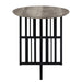 Embrace the charm of industrial design and the warmth of rustic aesthetics with this remarkable Zudora end table to create a captivating piece that adds character and style to your living room area. The warm tones and aged appearance of the tabletop exude a sense of rustic elegance, adding depth and character to the overall design. The metal pedestal base of the table is the epitome of industrial chic. With slatted detailing, the metal base adds a touch of modernity and ruggedness to the table's aesthetic. The black finish enhances the industrial look, providing a bold contrast against the antique oak tabletop finish.