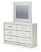 | Details | Includes dresser and mirror, Made with engineered wood (MDF/particleboard/plywood) and decorative laminate for the right balance of affordability and durability, Matte white finish with subtle replicated wood grain, Decorative laminate replicates natural or man-made material surfaces with consistent color, pattern and texture , Chrome-tone accents, Large-scale chrome-tone handles with faceted details, 6 smooth-gliding drawers, Drawer interiors are lined with a faux linen laminate for a clean, finished look, Mirror attaches to back of dresser; can also be mounted on wall horizontally or vertically, Safety is a top priority, clothing storage units are designed to meet the most current standard for stability, ASTM F 2057 (ASTM International), Drawers extend out to accommodate maximum access to drawer interior while maintaining safety, Minor assembly required | |